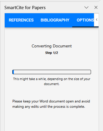Once it completes, your document will be properly formatted for use in SmartCite.