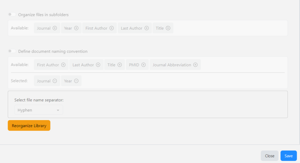 When also saving your Papers library locally you can organize how the files are saved and state how the folders and file names are set when downloading them locally.