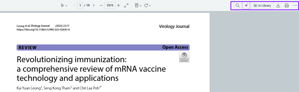 - Import to Library/In Library – if the article you’re viewing is not currently in your library, this will give you the option to import. Otherwise it will be marked as “In Library”